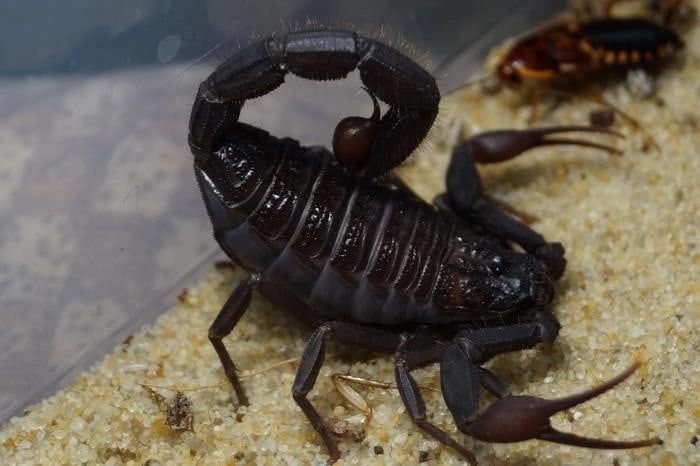 Кормление: молодых скорпионов нужно часто кормовыми насекомыми соответствующего размера. Взрослых особей кормят 1 раз в неделю.